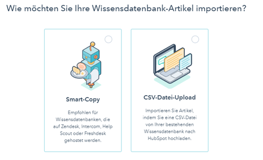 Diese Funktion ist zu finden unter: Einstellung > Website > Wissensdatenbank > Importieren und ist mit dem Hub Service Professional und Enterprise umsetzbar.